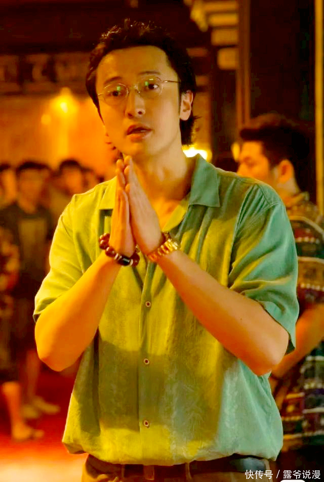 在片中,陆秉坤梳着大背头,戴着眼镜,右腕还戴着佛珠。