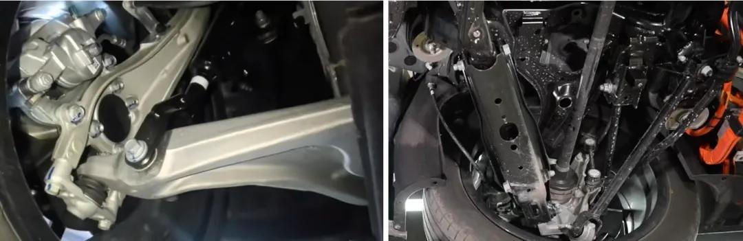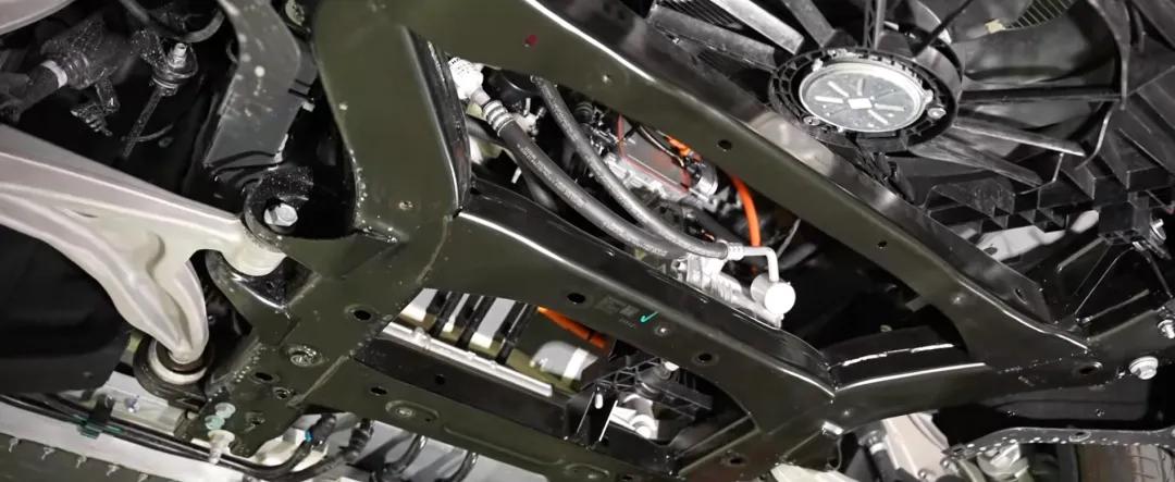 “日”字形全框副车架,三谈横梁,尺寸也黑白常的自如。