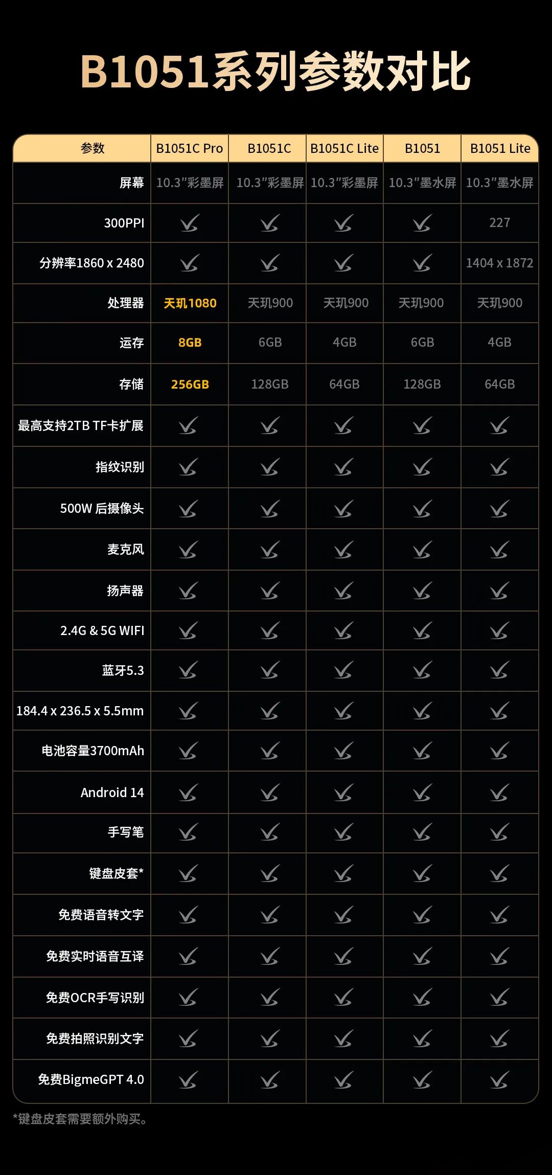 IT之家附 Bigme 大我 B1051 系列智能办公本亮点及参数对比如下:开yun体育网