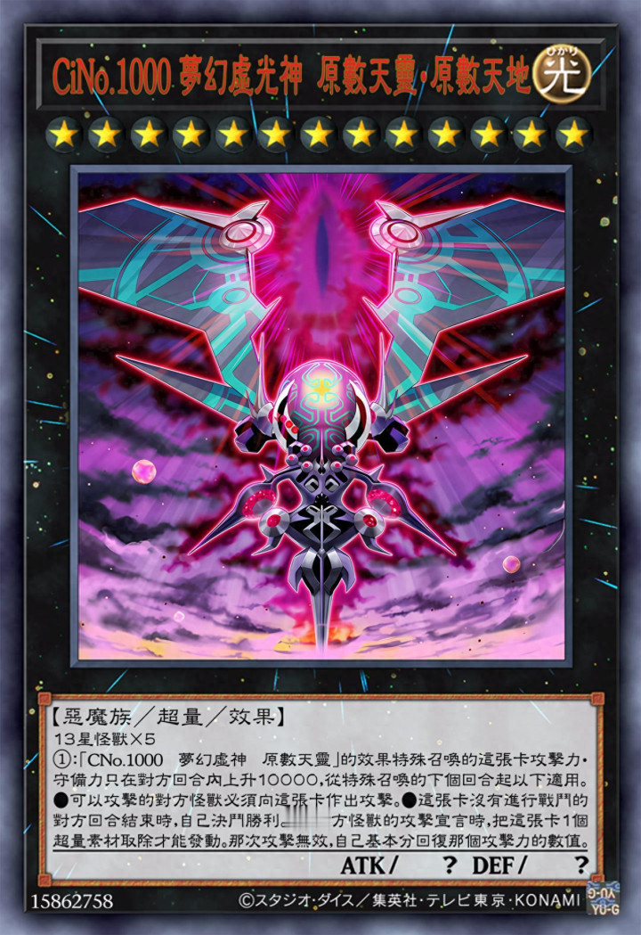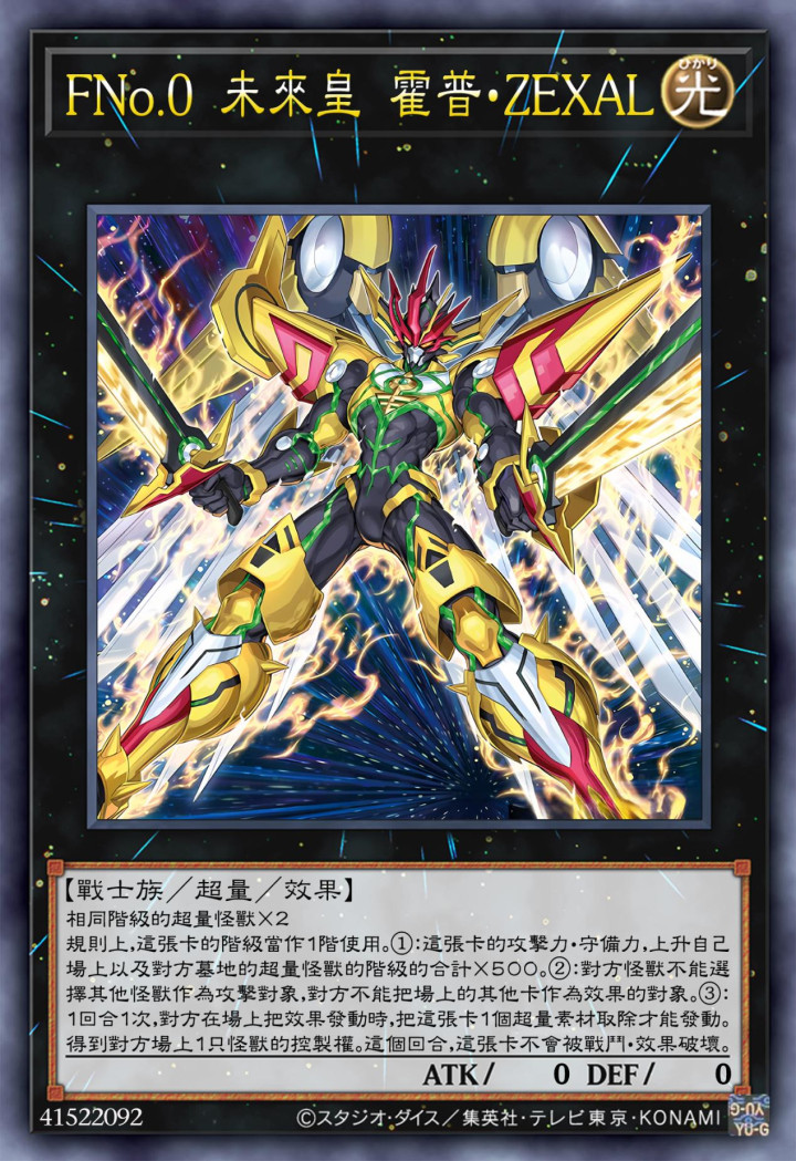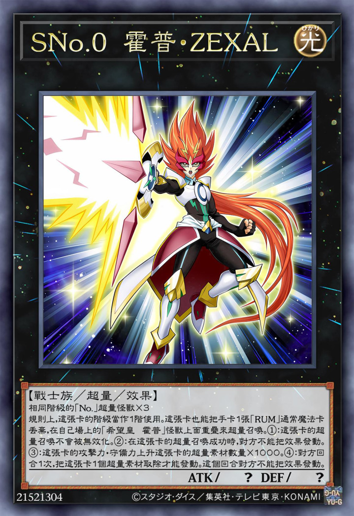 这只怪兽,属于编号怪兽,其需要NO字段怪兽之外的相通等第的两只超量怪兽为素材进行超量召唤,天然是0星怪兽,然则收尾方面让它可以被视为1星怪兽存在。