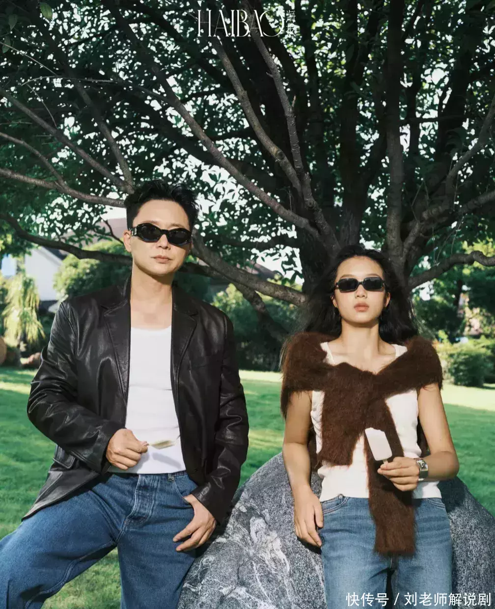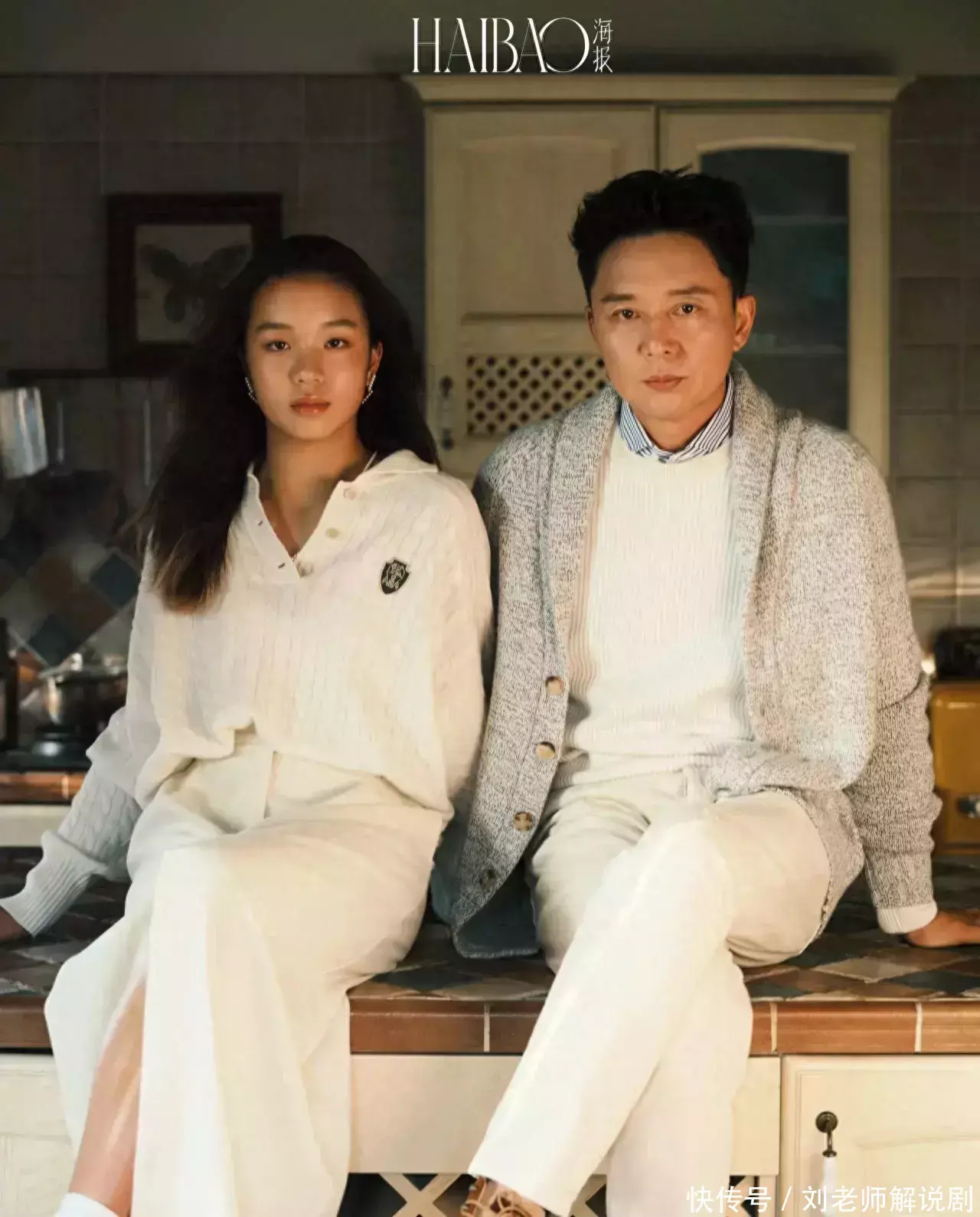 父女两东谈主比肩坐着,衣着真挚上衣,刘奕君看起来即是很儒雅闻东谈主的气质,女儿披垂着头发,气场全开,让东谈主很难坚信她才13岁。