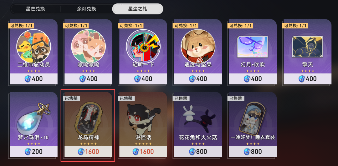 星尘之礼商店可兑换开辟者新穿搭精神欢乐。