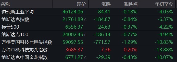 万得好意思国科技七巨头指数跌1.29%,谷歌跌近4%,微软跌超2%。纳斯达克中国金龙指数跌0.43%,禾赛科技跌超14%,信也科技跌逾4%。