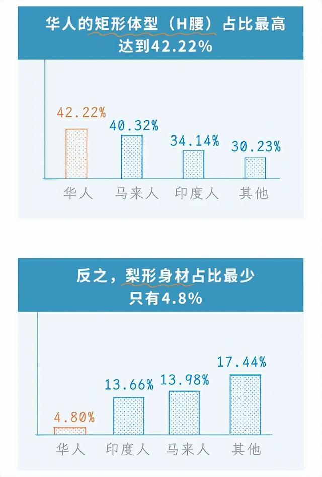 华东谈主的矩形骸型占比最高、梨型身体占比最少